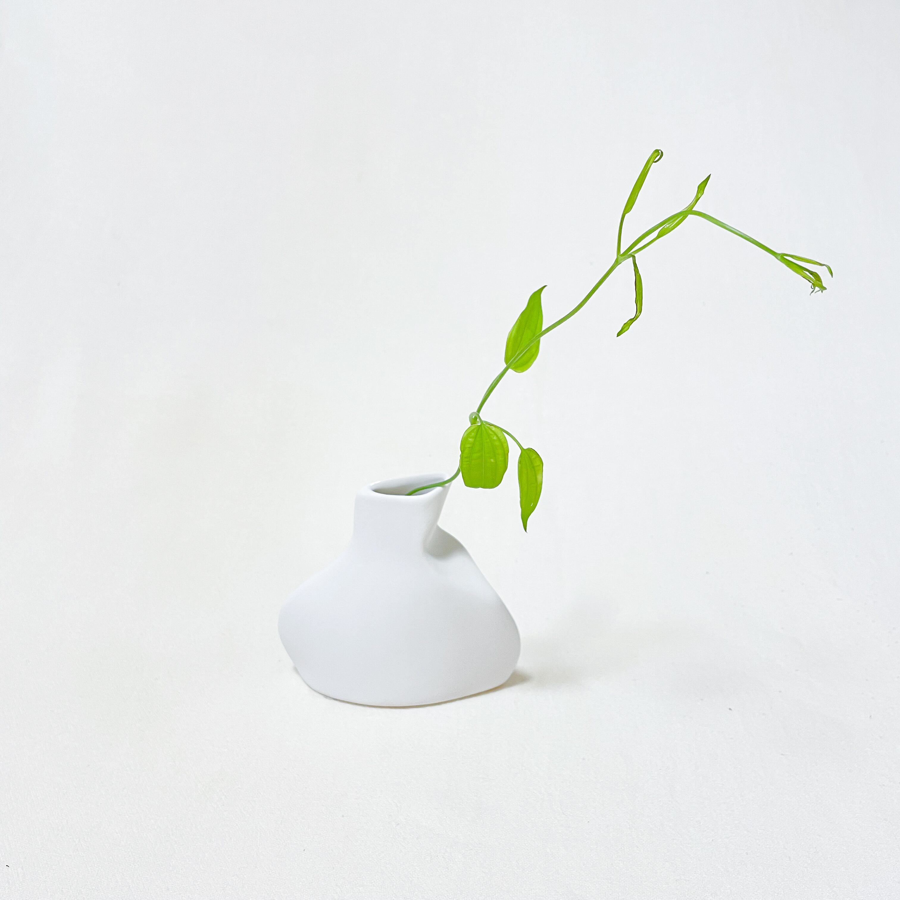 シンプルだけど、歪んだシルエットが面白い1点。お花だけでなく、ちいさい枝や葉っぱとも相性がよいです。